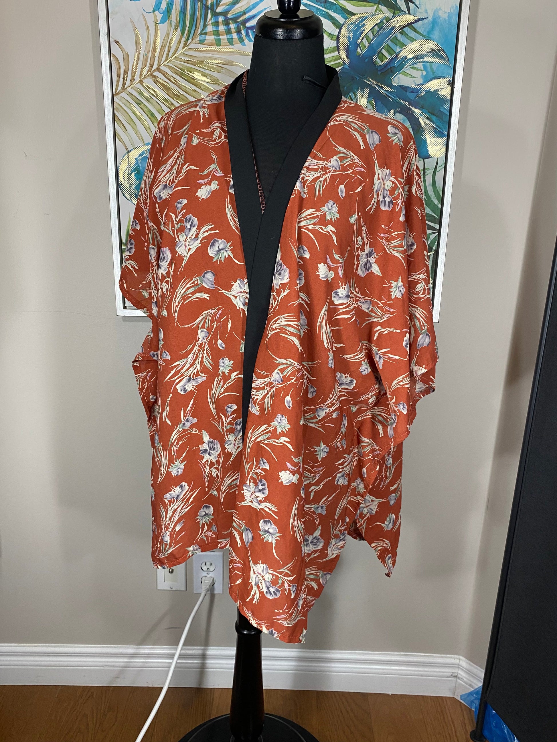Orange Flowers Short Kimono - One Size
